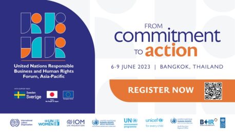មណ្ឌលអាជីវកម្មមានទំនួលខុសត្រូវបានចូលរួមក្នុង “វេទិកាធុរកិច្ចដែលមានទំនួលខុសត្រូវសហភាពអឺរ៉ុប និងសិទ្ធិមនុស្ស”ដែលប្រព្រឹត្តទៅនៅទីក្រុងបាងកក ប្រទេសថៃចាប់ពីថ្ងៃទី០៦ ដល់ថ្ងៃទី០៩ ខែមិថុនា ឆ្នាំ២០២៣។នាកម្មវិធីនេះ មជ្ឈមណ្ឌល RBHបានរៀបចំវគ្គអមវេទិកាក្រោមចំណងជើងថា “ការលើកកម្ពស់សិទ្ធិមនុស្ស និងការពិនិត្យផ្ទៀងផ្ទាត់ភាពត្រឹមត្រូវផ្នែកបរិស្ថាន៖ ការវាយតម្លៃឥទ្ធិពលនៃមណ្ឌលអាជីវកម្មមានទំនួលខុសត្រូវក្នុងខ្សែច្រវាក់ផ្គត់ផ្គង់វាយនភ័ណ្ឌ និងកាត់ដេរអាស៊ី។”